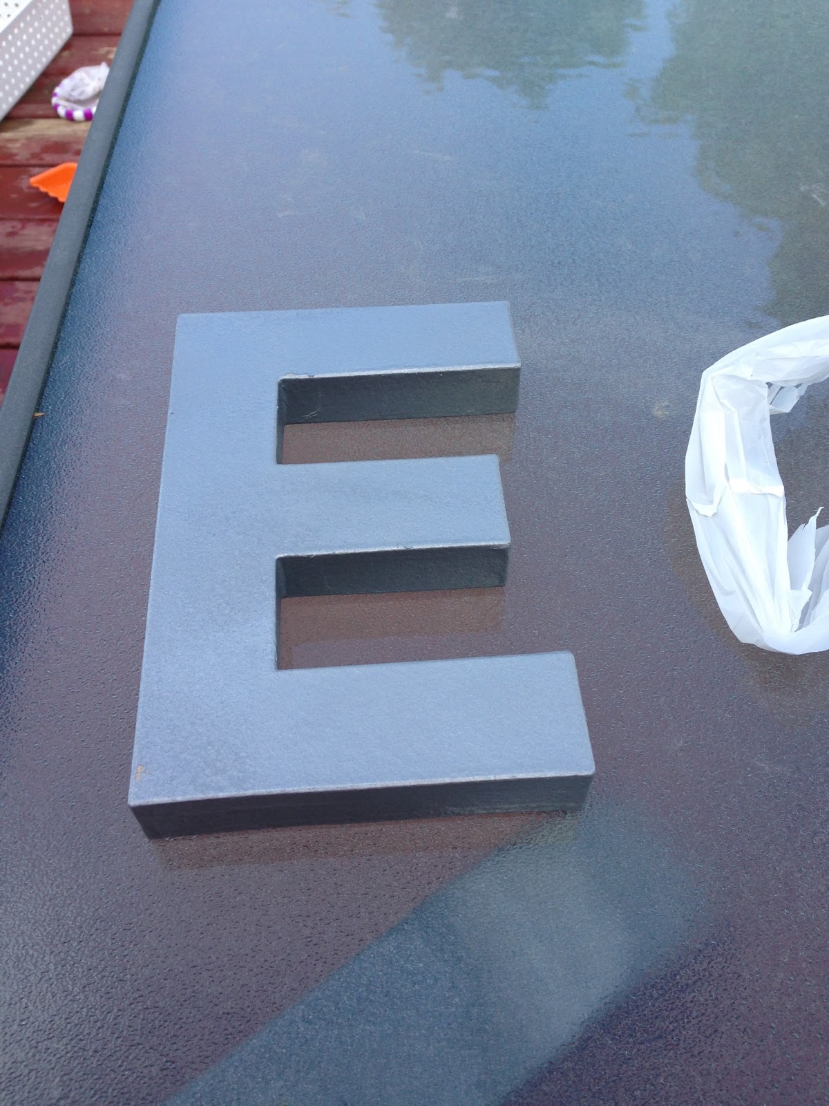 I'm sure there are so many ways to make "metal" letters on Pinterest. One tutorial that I pinned a long time ago was found here. But here is how I made my own "metal" looking letters.